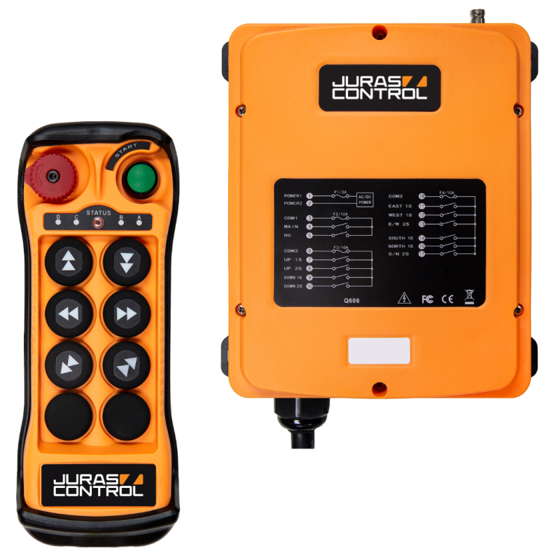 Jeřábový ovladač JC-Q600/JC-Q606 vám díky svému tvaru padne do ruky jako ulitý a umožní vám tak snadné ovládání. Tento typ obsahuje 6 tlačítek a je navržen pro mostové jeřáby všech konstrukcí.